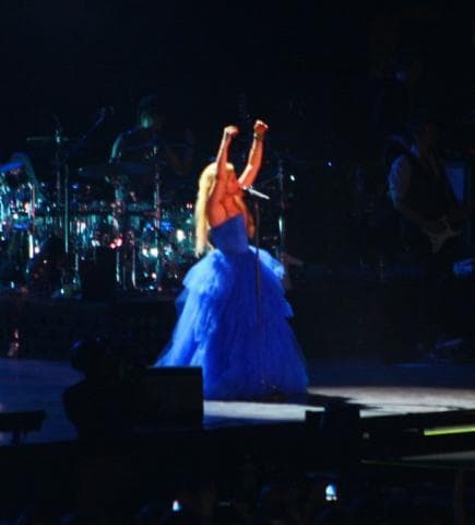 وتوالت أغنيات مغنية ال"بوب" العالمية التي تنقلت على الخشبة من يمين المسرح إلى يساره، تحمل الميكروفون مع قاعدته حينا، وترفعه عالياً حينا آخر، وتبدل ثيابها بشكل استعراضي.. كل جزء من أجزاء جسمها يتحرك ويهز ويرقص، من شعرها إلى قدميها الحافيتين.