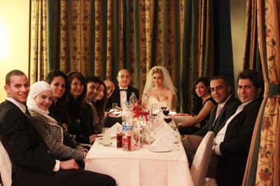 وضم الحفل مجموعة من أصدقاء العروسين والعديد من نجوم الدراما السورية منهم الفنان فراس ابراهيم والفنانة هنوف خربطلي.