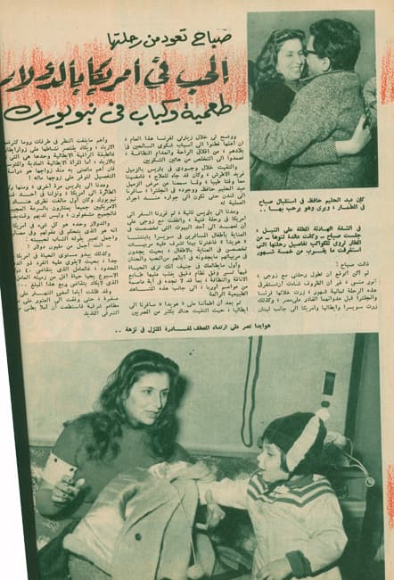 صباح تعود من رحلتها الحب في أمريكا بالدولار طعمية وكباب في نيويورك في الشقة الهادئة المطلة على النيل، جلست صباح وكانت عائدة لتوها من المطار تروي للكواكب تفاصيل رحلتها التي استغرقت ما يقرب من خمسة شهور قالت صباح: لم أكن أتوقع أن تطول رحلتي مع وزجي، أنور منسي، غير أن الظروف شاءت أن تستغرق هذه الرحلة ثمانية شهور، زرت خلالها فرنسا وانكلترا قبل عدوانهما الغادر على مصر، وكذلك زرت سويسرا وايطاليا وأمريكا إلى جانب لبنان، ووضح لي خلال زيارتي لفرنسا هذا العام، أن أهلها فطنوا إلى أسباب شكوى السائحين في بلادهم، من إقلاق الراحة وإنعدام النظافة، فعمدوا إلى التخلص من هاتين الشكويين .. والتقيت خلال وجودي في باريس بالزميل فريد الأطرش، وكان قد جاء للعلاج، فأمضينا معاً وقتاً طيباً، ولما سمعنا عن مرض الزميل عبد الحليم حافظ ووجوده في انكلترا، سافرنا إلى لندن حتى نكون إلى جواره عند إجراء العملية له .. وعدنا إلى باريس ثانية، ثم قررنا السفر إلى أمريكا في رحلة فنية، واتفقت مع زوجي على أن نعهد إلى أحد البيوت التي تخصصت في العناية بأطفال المسافرين في سويسرا بابنتنا "هويدا" فاخترنا بيتاً تشرف عليه مربيات تخصصن في العناية بالأطفال، بحيث يجدون في مربياتهم ما يجدونه في آبائهم من الحب والحنان .. وأول ما يطالعك في جنيف أنك ترى الحياة فيها تسير وفق نظام دقيق يغلب عليها طابع الأناقة والنظافة، بما قد لا تجده في أية عاصمة من عواصم أوربا، إلى جانب هذه المشاهد الطبيعية الرائعة .. ثم بعد أن اطمئننا على "هويدا" سافرنا إلى إيطاليا حيث التقيت هناك بكثير من المصريين. وأهم ما يلفت النظر في طرقات روما كثرة محال الأزياء، ويكاد يقتصر نشاطها على زوار إيطاليا، فالطبقة الراقية الإيطالية وحدها هي التي تهتم بالأزياء، أما المرآة الإيطالية العادية والمتوسطة فإن أهم ما تعنى به منذ زواجها هو دراسة فن التفصيل لتوفر على زوجها ماله! وعدنا إلى باريس مرة أخرى، ومنها ركبنا الطائرة إلى أمريكا، ونزلنا في أحد فنادق نيويورك وكان أول ما لفت نظري هناك، أن الأمريكيين جميعاً يمتازون بالسرعة العجيبة، فالجميع مشغولون، وليس لديهم وقت يضيعونهم والدولار وحده هو كل شيء في أمريكا ... إنه هو الذي يتحكم في عقولهم وفي مصائرهم، وأجمل تعبير يقوله الشاب لحبيبته .. أنت أجمل من مليون دولار !! وكذلك يبدو مستوى الحياة في أمريكا مرتفعاً جداً، بحيث لا يقوى عليه الفرد ذو الدخل المحدود، فالعامل الذي يتقاضى أربعين دولار في الأسبوع يحيا حياة أقل من زميله العامل المصري الذي لا يكاد يتقاضى ربع هذا المبلغ .. وقد ظللت أياماً أمضي النهار على لقيمات صغيرة، حتى وفقت إلى العثور على عناوين مطاعم شرقية فاستطعت أن أملأ بطني من طعامها الشرقي اللذيذ. والأناقة في السيدات تبدو لكل ذي عين. والأزياء هناك تباع بأسعار جنونية، ورغم هذا تجد السيدات أنيقات حتى العجائز منهن! ولا هم للشاب الأمريكي إلا أن يعمل طوال النهار، عملاً مضنياً شاقاً، فإن أمامه المثل الأعلى الذي يسعى إليه وهو أن يصبح مليونيراً ! وتنفق الدعاية الصهيونية في أمريكا مبالغ طائلة، في سبيل نشر الأنباء الكاذبة عن مصر، وعندما وقع الاعتداء الغادر على مصر، نشطت الدعاية الصهيونية في نشر أنباء مكذوبة عن انتصار الاستعمار، وكان أن اتصلت مع زوجي بالأستاذ علي خليل الذي كان يعمل في هيئة الأمم المتحدة فكذب لنا هذه الأنباء. ولمست خلال وجودي هناك، أن الرأي العام الأمريكي كان مع مصر خلال المعركة رغم أن الدعاية الصهيونية كانت تحاول أن تبدد هذه المشاعر الطيبة بدعاياتها المغرضة ولكنها لم توفق إلى ذلك. وقد أكد لي أحد الأمريكيين الذين تعرفنا بهم خلال رحلتنا، أن الأمريكيين جميعاً يعجبون بالرئيس المصري جمال عبد الناصر، ويعتقدون أن سياسته ستدفع مصر إلى الأمام في خطوات جبارة .. وقد غنيت في عشرين حفلة، وتلقى الأغاني المصرية إعجاباً شديداً من الشرقيين المقيمين في أمريكا، وقد وجدنا أغنية "زنوبة" منتشرة هناك، وكان رواد الحفلات 