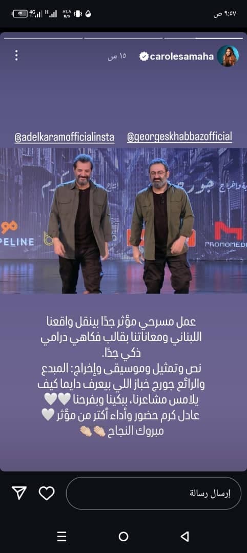 كارول سماحة تتأثر بمسرحية "خيال صحرا" وتوجه رسالة لجورج خباز