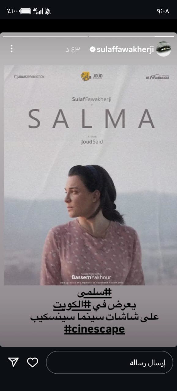 وأعلنت فواخرجي عن ذلك عبر خاصية الستوري على إنستغرام، بنشرها بوستر الفيلم مرفقاً بعبارة: "سلمى.. يعرض في الكويت، على شاشات سينما سينسكيب".