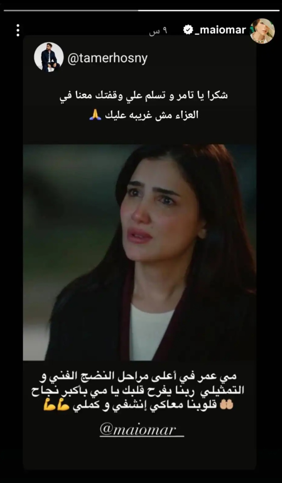 وعبر خاصيَّة ستوري في حسابه الرسمي على إنستغرام، أشاد تامر حسني بأداء مي عمر في مسلسل الست موناليزا، مؤكداً أنَّها بلغت مرحلةً متقدِّمةً من النضج الفني والتمثيلي، ومتمنياً لها مزيد من النجاح، في رسالة حملت كلماتِ مواساة واضحة ودعماً معنوياً مباشر، اختتمها بعبارة: "انشفي وكمّلي".